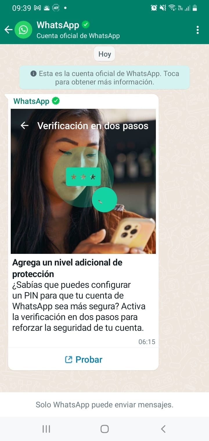 Esta verificación en dos pasos solo protege el registro de tu número de teléfono en otro terminal, y el segundo paso es un código PIN que eliges tú mismo al activar la función, en lugar de ser un SMS o un código en una app como Authenticator. Aunque WhatsApp lo llama verificación en dos pasos, en verdad es más una protección para el registro de tu teléfono.