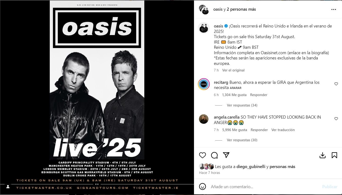 La noticia del regreso de Oasis es tendencia en las redes sociales, donde los usuarios compartieron numerosos memes celebrando el anuncio. Para muchos fanáticos, el regreso de Oasis es más que un simple reencuentro; representa la posibilidad de revivir la energía de una de las bandas más influyentes del britpop.