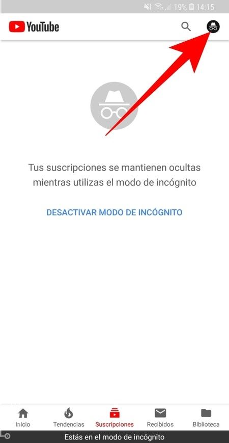 Modo incógnito de YouTube: