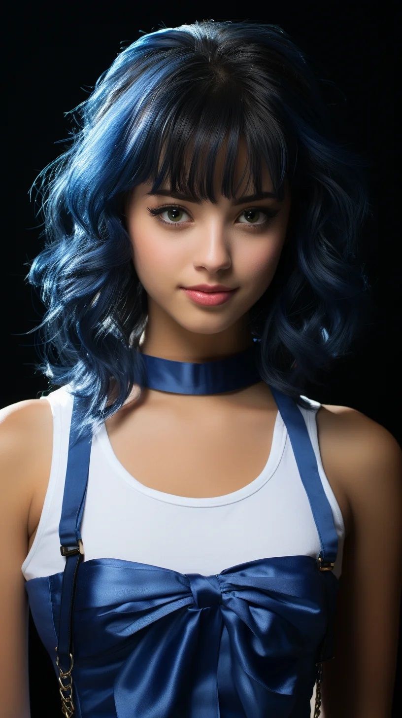 La recreación de Ami a través de inteligencia artificial presenta a una joven hermosa, con cabello azul y el característico estilo de Ami Mizuno. Los ojos verdes y el flequillo en el cabello son características que resaltan. Aunque es importante mencionar que la recreación con IA ha modificado las facciones de manera que se alejan de los rasgos orientales presentes en la serie animada original.