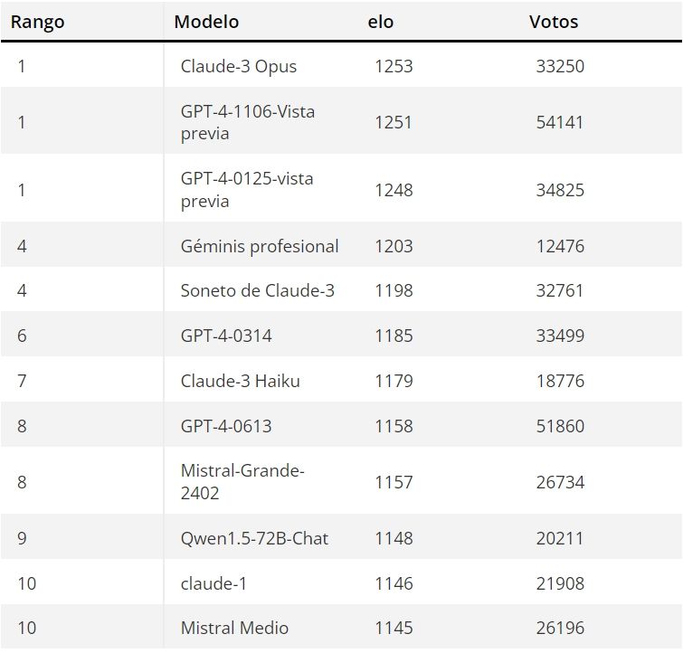 "Utiliza el sistema de clasificación Elo, que se utiliza ampliamente en juegos como el ajedrez, para calcular los niveles de habilidad relativos de los jugadores. A diferencia del ajedrez, esta vez la clasificación se aplica al chatbot y no al humano que utiliza el modelo" Ryan Morrison de Tom's Guide.