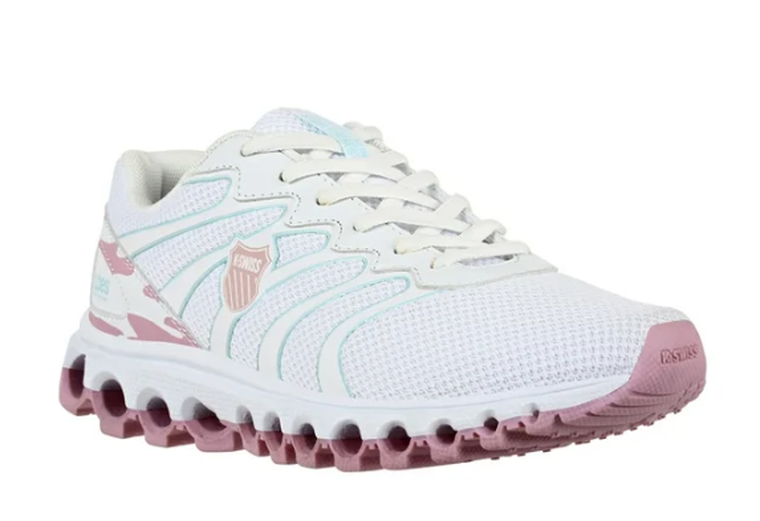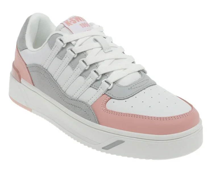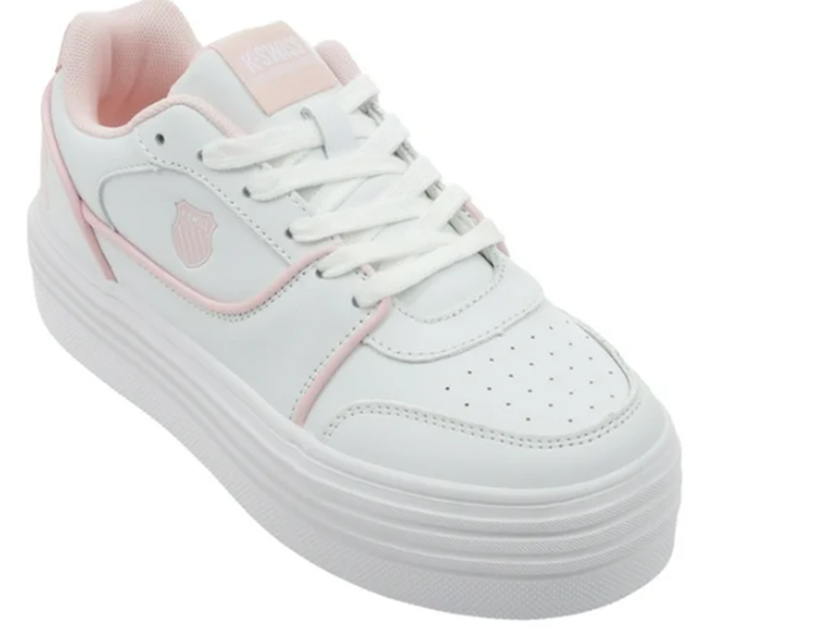 Por su parte, los K-Swiss Naima para dama, disponibles en color rosa, tienen un precio especial de $1,669.00. Estos tenis se destacan por tener una plataforma ligera, suela antiderrapante y acolchonado en el tobillo, lo que mejora la comodidad y la amortiguación del impacto al andar.
