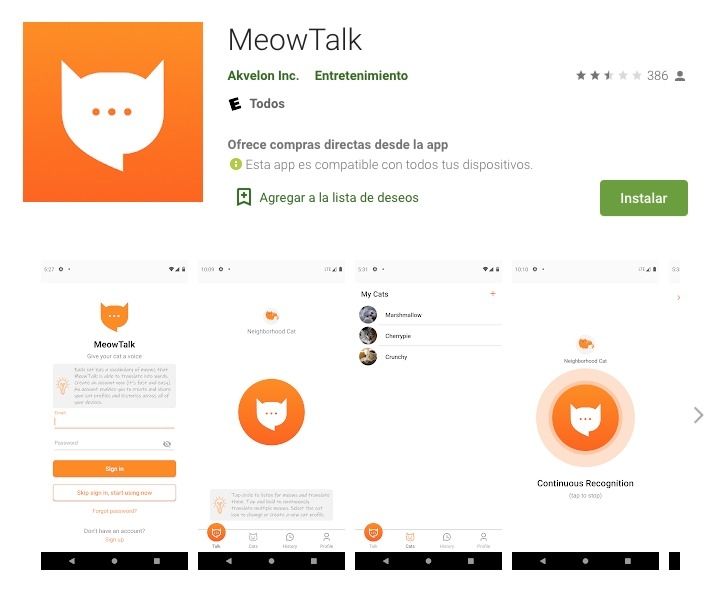 La app se llama MeowTalk, y fue creada por el ingeniero Javier Sánchez ex integrante de Amazon. MeowTalk se basa en el principio en que los gatos emiten nueve maullidos diferentes, cada uno con una intención diferente que intenta comunicar alguna necesidad o algo que les llega a pasar.