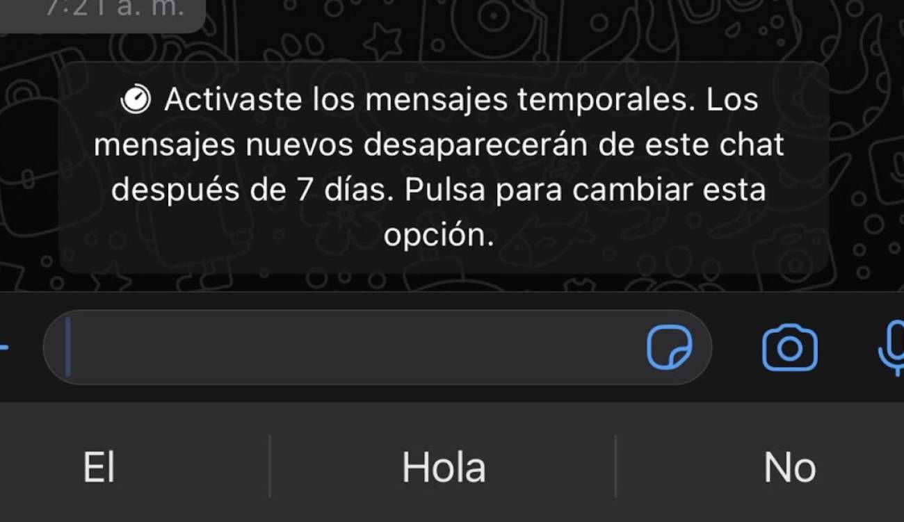 Se trata de una función que permite eliminar automáticamente los mensajes. Si bien no se puede configurar cuándo, los mismos desaparecerán a los 7 días de haberse enviado.