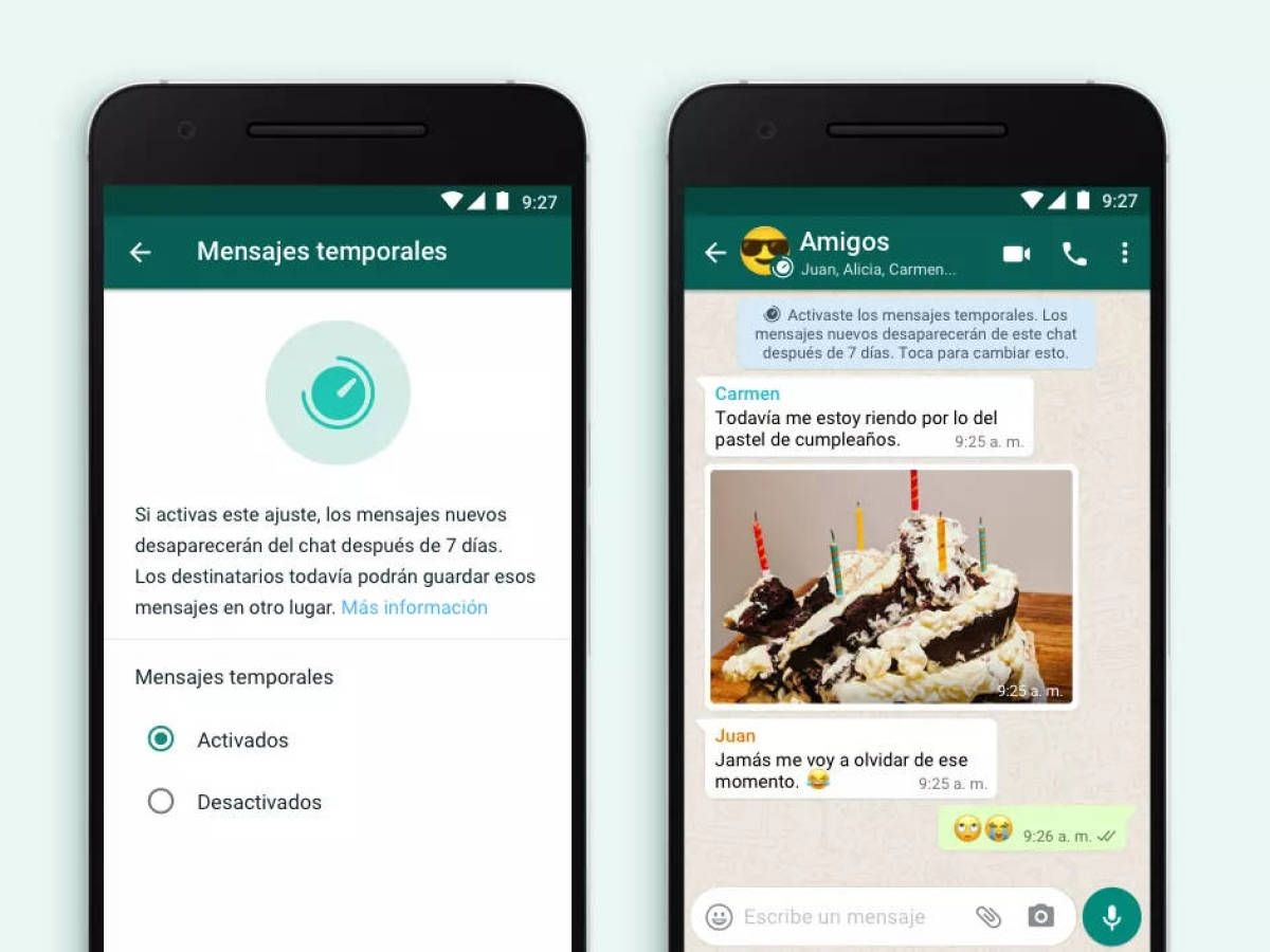 "Al principio, ofreceremos la opción de que los mensajes desaparezcan después de siete días porque consideramos que este período de tiempo les permitirá a los usuarios seguir el hilo de la conversación sin olvidarse de qué estaban chateando", aclaró WhatsApp.