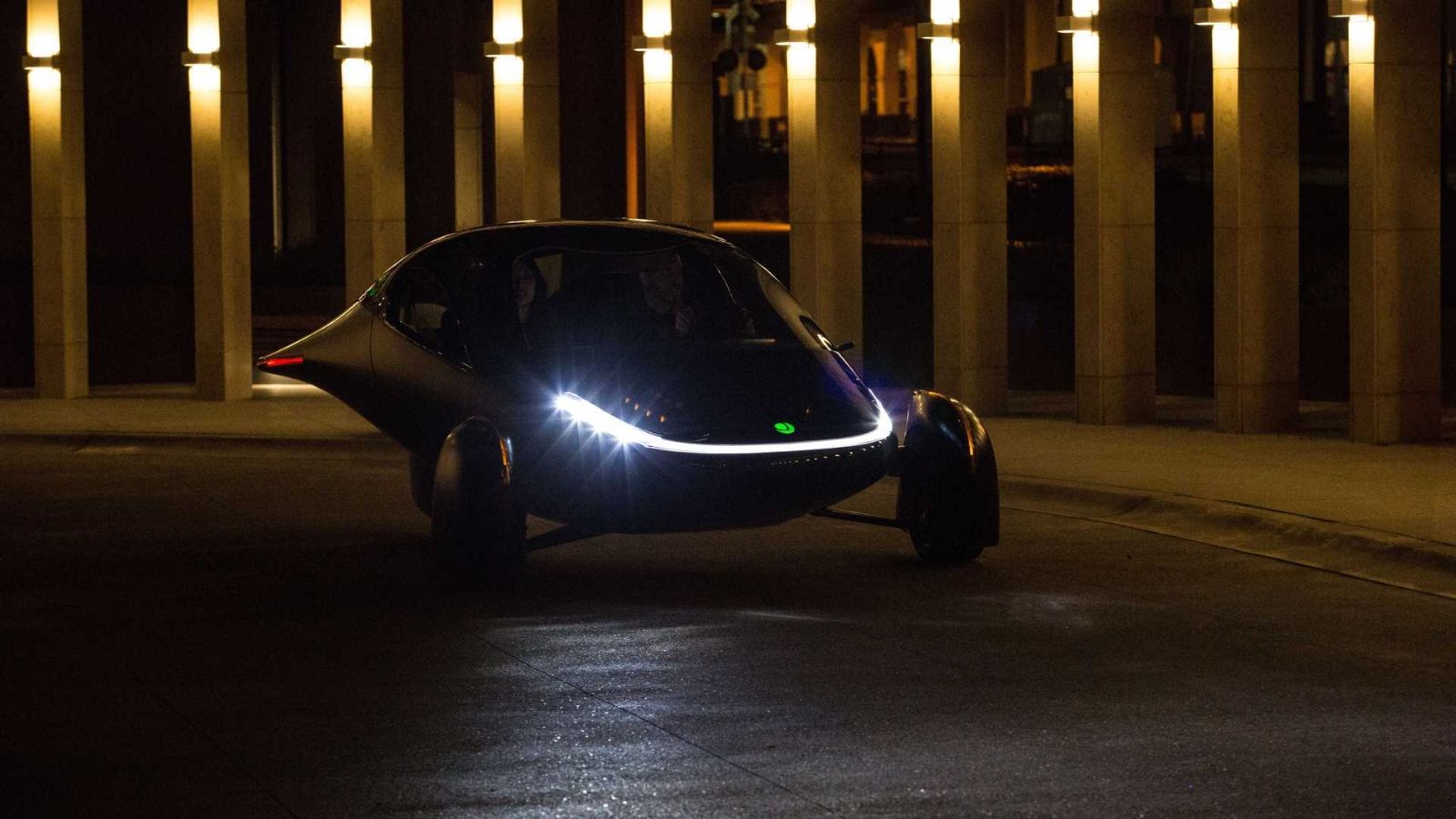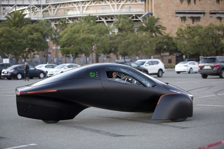 El nuevo vehículo Aptera de tres ruedas, dos personas (o dos adultos más mascota, como sugieren sus especificaciones ) tiene una matriz de techo solar que puede proporcionar hasta 45 millas de alcance por día.