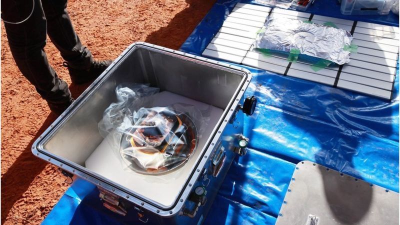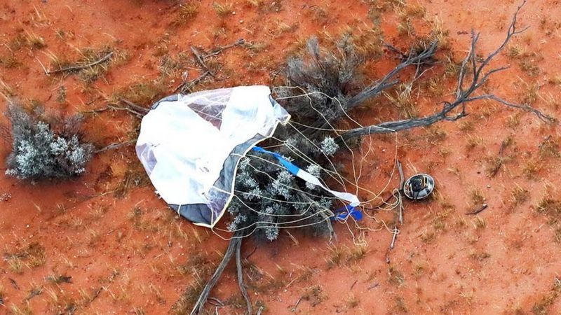 El equipo de búsqueda en Australia encontró el artefacto espacial posado en un suelo arenoso, con el paracaídas cubierto sobre un árbol. Las muestras fueron recolectadas originalmente por la nave espacial japonesa Hayabusa-2.