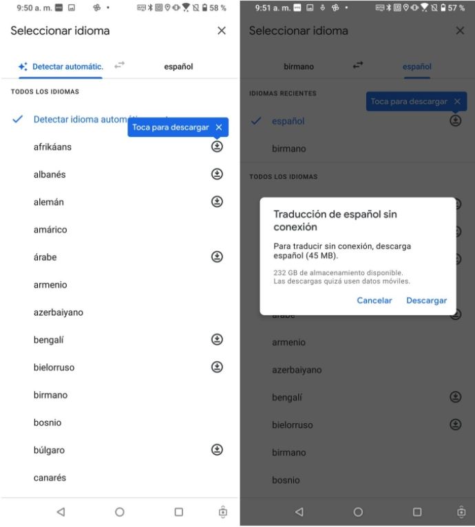 Cada paquete de idioma pesa alrededor de 100MB o menos. Si bien no debería representar un problema en el almacenamiento de tu dispositivo, siempre existe la opción de eliminarlos.