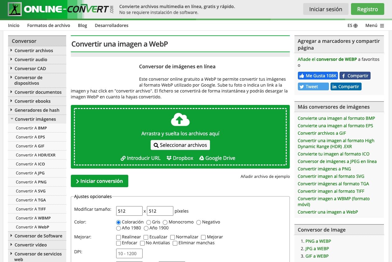 La descarga se realizará en formato GIF, pero todavía no está listo para usar en Whatsapp. Primero debemos cambiar la extensión a WEBP desde este sitio y también debemos modificar la resolución de salida a 512 píxeles por lado. Parece tedioso, pero son solo dos pasos.