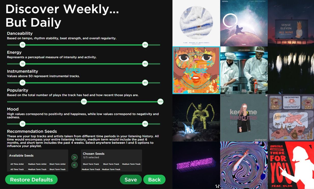 Esta web también te entregará 30 canciones, pero lo hará todos los días en lugar de una vez por semana. El historial de los que hayas escuchado tendrá mucho que ver en la elección, pero también podremos personalizar algunos parámetros.