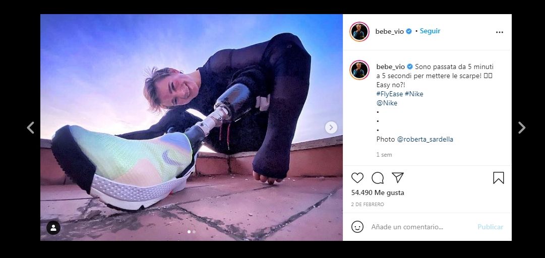 La esgrimista en silla de ruedas Beatrice Vio señaló en Instagram: "Solía llevar mucho tiempo ponerse los zapatos. Desde que tuve NIKE Go Flyease, usar zapatos finalmente se ha vuelto más fácil. "