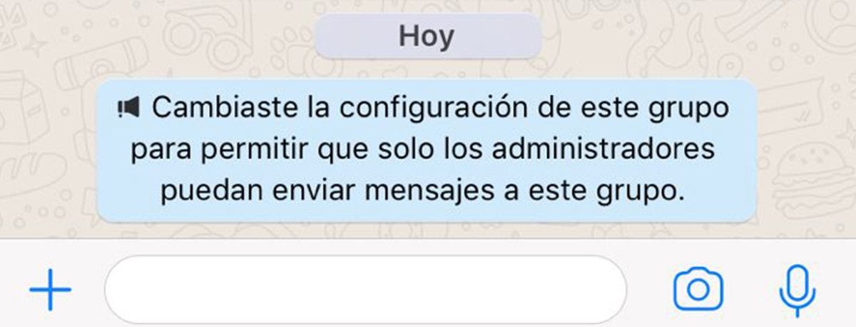 Una vez actualizada esta preferencia, WhatsApp agrega un mensaje de alerta en la conversación grupal para informar sobre el cambio a los participantes. Los administradores podrán escribir normalmente, pero los miembros verán que el campo habitual para redactar texto en la parte inferior, es reemplazado por una nota fija que dice "Solo los administradores pueden enviar mensajes". Todo el historial del chat del grupo no se verá afectado.
